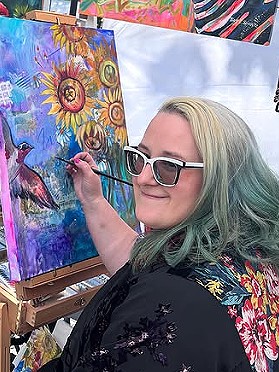 When I had my first son in 2020, I began to play with art supplies again. Soon after, I decided to look for a second job to make some extra money, or to find a job to leave my retail manager role, and started working at Painting with a Twist in Allentown. There, I met so many other artists, and with painting more often, started thinking I could pursue art full time if given the opportunity.