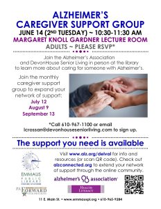 Join DevonHouse Senior Living and the Alzheimer’s Association in person at the library to learn more about Alzheimer’s.*