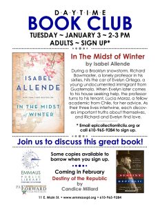 Join us to discuss In the Midst of Winter by Isabel Allende in the Margaret Knoll Gardner Lecture Room.