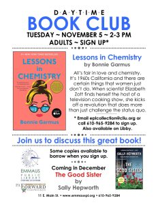 Join us to discuss Lessons in Chemistry by Bonnie Garmus in the Margaret Knoll Gardner Lecture Room.