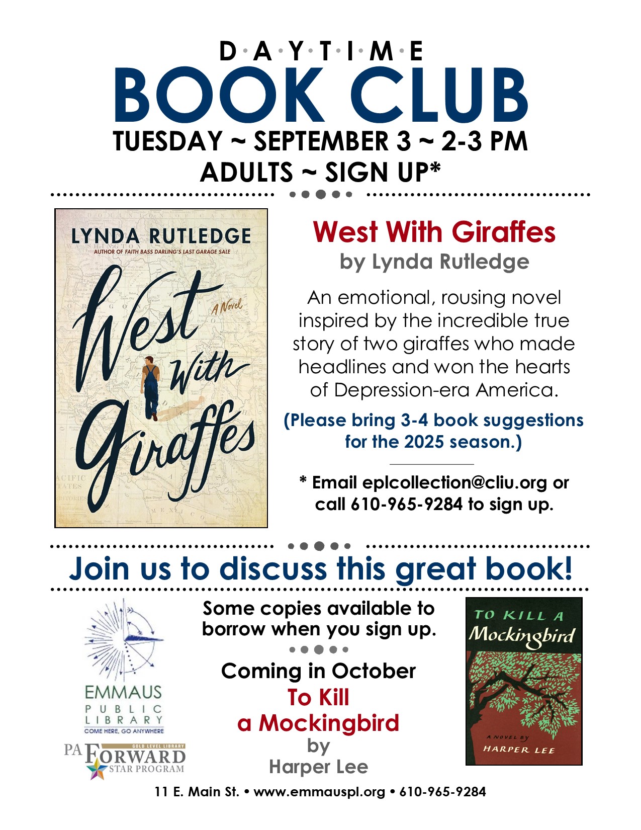 *RSVP: Email [email protected] or call 610-965-9284 to sign up. Some copies available to borrow at the front desk.
