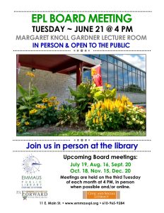The June board meeting will be held in person in the Margaret Knoll Gardner Lecture Room.