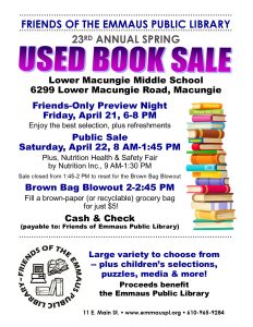 It’s the 23rd Annual Spring Used Book Sale hosted by the Friends of Emmaus Public Library!
