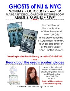 Journey through the spooky side of New Jersey and New York City in this presentation by L’Aura Hladik Hoffman, founder and director of the New Jersey Ghost Hunters Society.