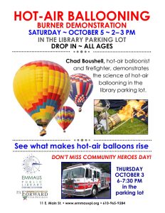 Chad Boushell, hot-air balloonist and firefighter, demonstrates the science of hot-air ballooning in the library parking lot.
