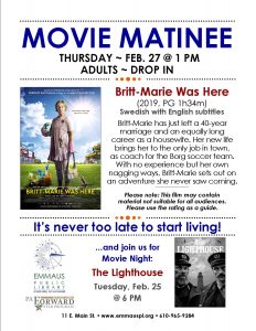 Movie Matinee: Britt-Marie Was Here (2019) PG 1h34m.
