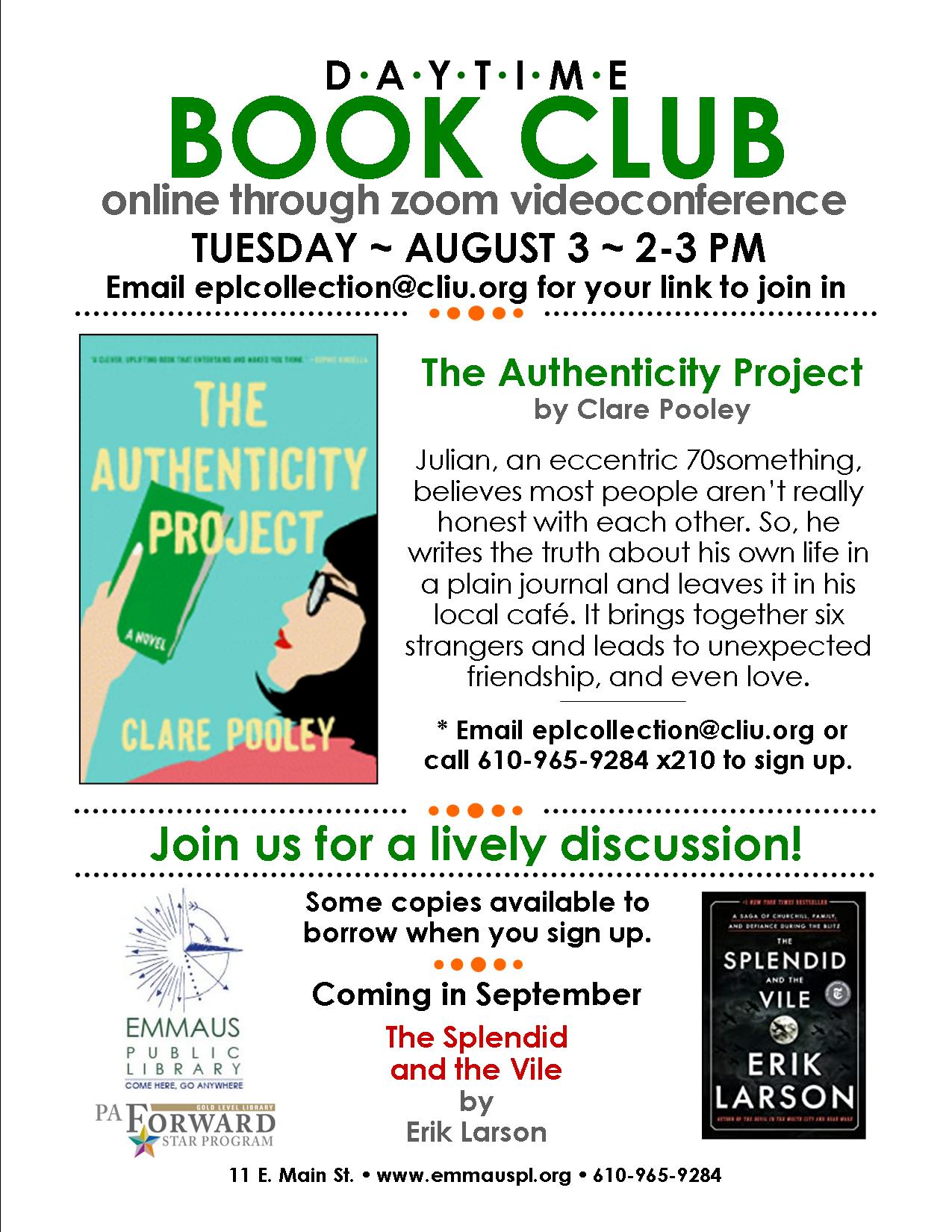 Join us for a lively discussion of The Authencity Project by Clare Pooley!