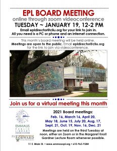 This month’s Emmaus Public Library board meeting will be held online via Zoom videoconference. Meetings are open to the public.