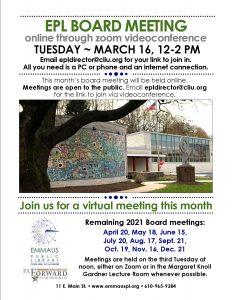 The March Emmaus Public Library board meeting will be held online via Zoom videoconference. Meetings are open to the public.
