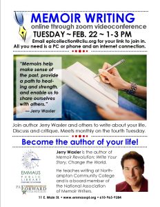 Join author Jerry Waxler and others online via Zoom video conference to write about your life.