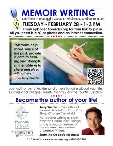Join author Jerry Waxler and others online via Zoom video conference to write about your life.