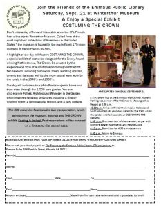 Enjoy a day of fun and fellowship on Saturday, September 21, when the Friends of the Emmaus Public Library host a bus trip to Winterthur Museum.