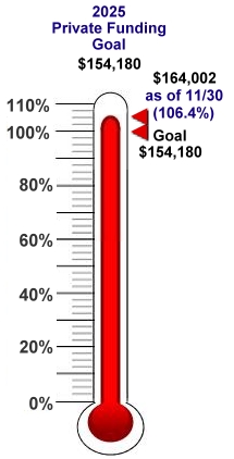 The private-funding thermometer rose by $38,824 in November, bringing the total for the year to $164,002 or 106.4% percent of the goal.