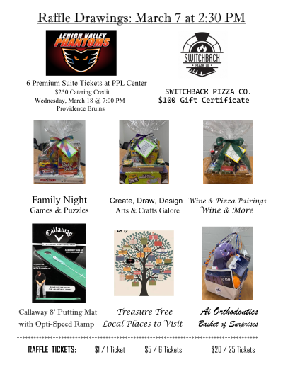 Prizes will be drawn at the event on Saturday, March 7, at 2:30 p.m. — you need not be present to win.